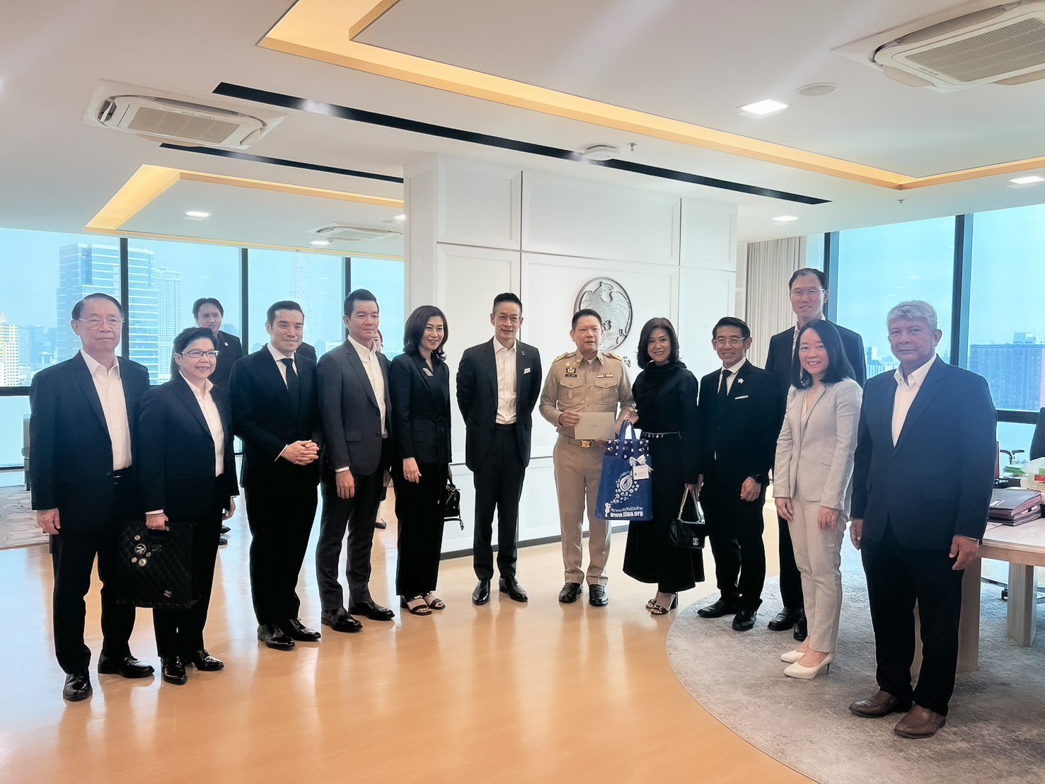 นางนุสรา (อัสสกุล) บัญญัติปิยพจน์ นายกสมาคมประกันชีวิต พร้อมด้วยกรรมการบริหารสมาคมฯ และผู้บริหารสมาคมฯ เข้าพบนายลวรณ แสงสนิท ปลัดกระทรวงการคลัง เพื่อสวัสดีปีใหม่ 2569 ณ ชั้น 18 อาคาร 150 ปี กระทรวงการคลัง เมื่อวันที่ 12 มกราคม 2569