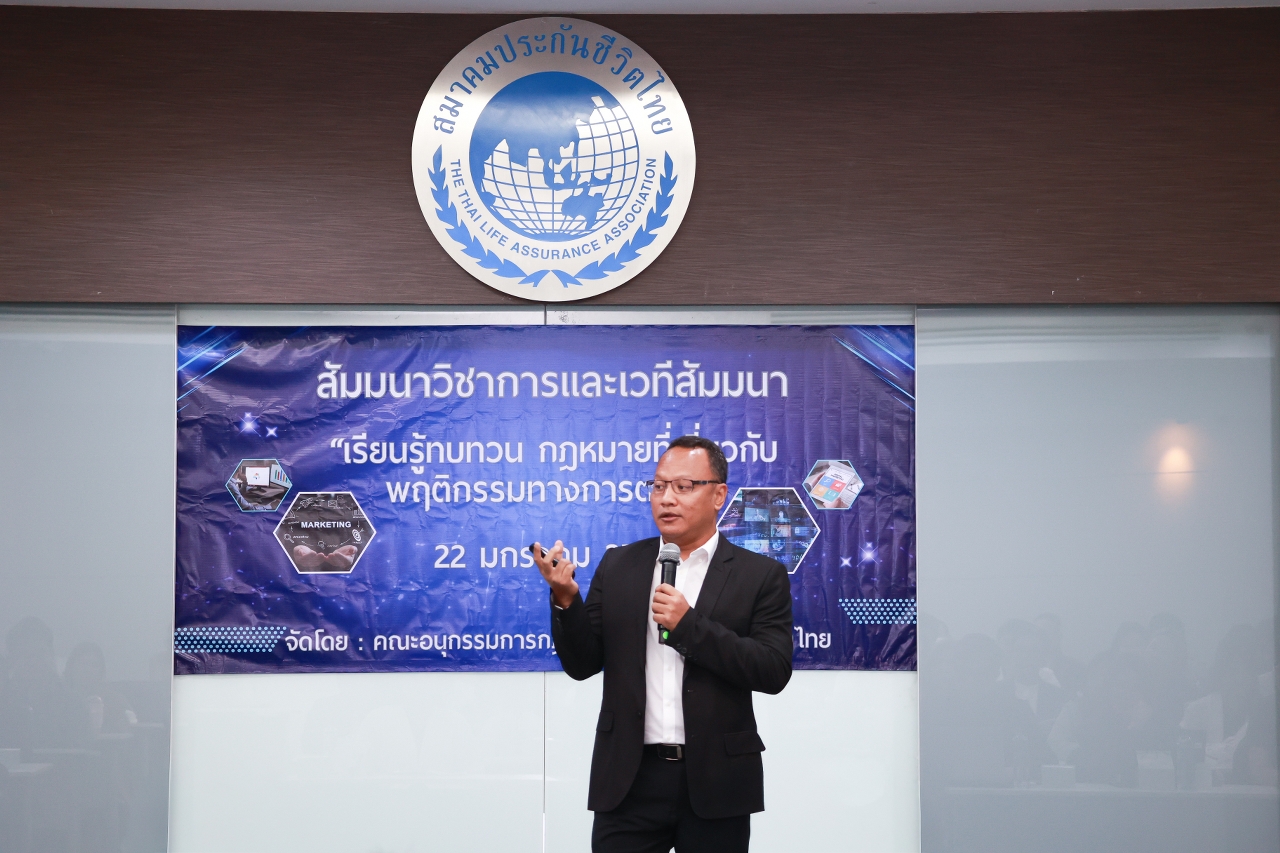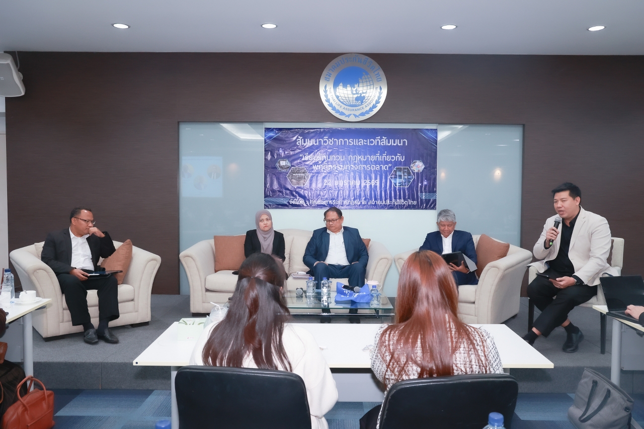 สมาคมประกันชีวิตไทย โดยคณะอนุกรรมการกฎหมาย จัดงานสัมมนาวิชาการเรื่อง “เรียนรู้ ทบทวนกฎหมายที่เกี่ยวกับพฤติกรรมทางการตลาด” เมื่อวันที่ 22 มกราคม 2569 ณ ห้องประชุม 701 อาคารสมาคมประกันชีวิตไทย เพื่อมุ่งเน้นการเสริมสร้างความรู้เชิงลึกและแนวทางปฏิบัติงานตามหลักเกณฑ์ Market Conductเพื่อประโยชน์สูงสุดของผู้เอาประกันภัยและการเติบโตอย่างยั่งยืนของภาคธุรกิจ
