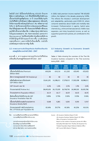 โดยในปัี 2567 มีเบัี�ยปัระกันภัยรับัรวิม 653,923 ล้านบัาท In 2024, total premium income reached THB 653,923