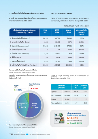 3. ธุนาคาร (Bancassurance) 239,112 245,498 37.54% 2.67%