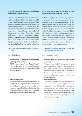 การจำาหน่าย ในปัี 2567 สำาหรับัเบัี�ยปัระกันภัยรับัรวิมจำาแนก In 2024, for total premiums classified by distribution