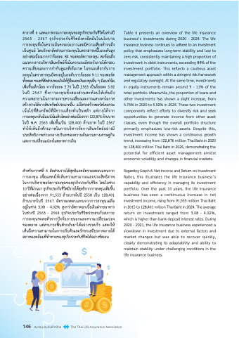 ตารางที� 6 แสดงภาพรวิมการลงทุนขอุงธุุรกิจปัระกันชีีวิิตในชี่วิงปัี Table 6 presents an overview of the life insurance
