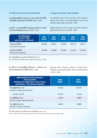 รวิมถึึงสถึิติการสอุบัตัวิแทนปัระกันชีีวิิต ปัี 2566 - 2567 agents and brokers, including statistics on the life
