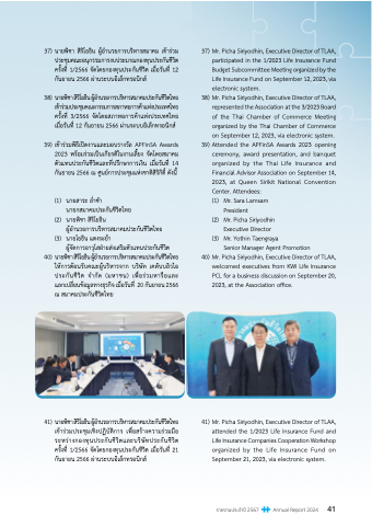 41) นายพิชีา สิริโยธุิน ผู้อุำานวิยการบัริหารสมาคมปัระกันชีีวิิตไทย 41) Mr. Picha Siriyodhin, Executive Director of TLAA,