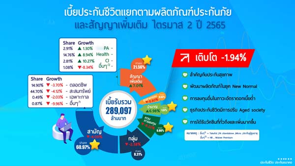 ร้อยละ 9.15 เมื่อเทียบกับช่วงเดียวกันปี 2564 ซึ่งหลัก ๆ มาจากการที่ประชาชนเริ่มตระหนักให้ความสำคัญกับการดูแลสุขภาพและการทำประกันสุขภาพมากขึ้น
