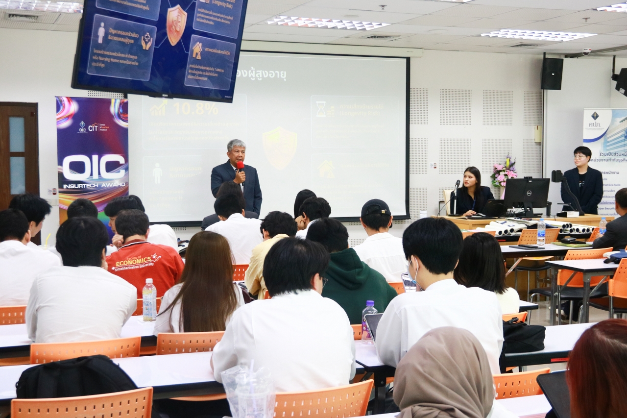 นายจรุง เชื้อจินดา รองผู้อำนวยการบริหารสมาคมประกันชีวิตไทย ได้รับเชิญเป็นวิทยากรบรรยายพิเศษในหัวข้อ "นวัตกรรมประกันภัยไร้รอยต่อ: ยกระดับคุณภาพชีวิตวัยเก๋าด้วย InsurTech" ให้แก่นักศึกษาคณะเศรษฐศาสตร์ มหาวิทยาลัยศรีนครินทรวิโรฒ กว่า 160 คน ภายใต้โครงการ “ประกวดชิงรางวัลนวัตกรรมด้านเทคโนโลยีการประกันภัย ประจำปี 2569 (Education and InsurTech Talent Program 2026)” จัดโดยสำนักงานคณะกรรมการกำกับและส่งเสริมการประกอบธุรกิจประกันภัย (สำนักงาน คปภ.) โดยศูนย์ส่งเสริมเทคโนโลยีด้านการประกันภัย (Center of InsurTech, Thailand หรือ CIT) เมื่อวันที่ 27 มีนาคม 2569 ณ มหาวิทยาลัยศรีนครินทรวิโรฒ